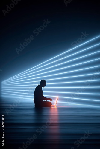 person, laptop, workspace, technology, environment, innovation, dark, light, abstract, communication, task, design, cyber, adult, developer, device, modern, creativity, visual, keyboard, space, success, contraption, silhouette, ergonomic, freelance, productivity, screen, work, motivation, sharpened, entrepreneurship, cyberspace, human, study, professional, individual, programming, contrast, workstation, illumination, computer, virtual, software, concentration, office, connection, electronic, network
