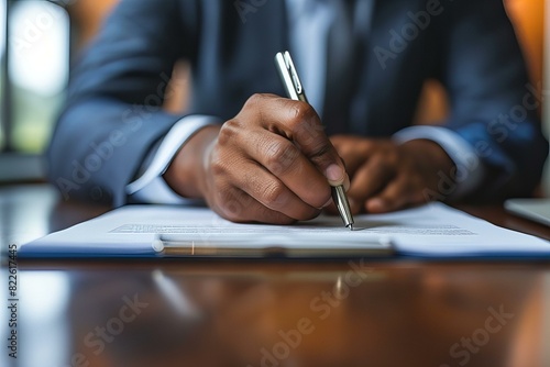 Person writing paper pen working business