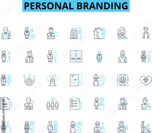 Personal branding linear icons set. Identity, Image, Reputation, Presence, Storytelling, Authenticity, Consistency line vector and concept signs. Clarity,Perception,Messaging outline Generative AI