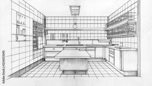 Perspective Drawing of a Modern, Minimalist Kitchen Design Concept