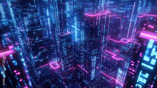 perspective holographic style data stream from a rooftop perspective