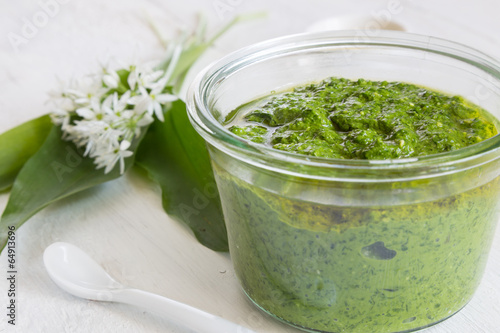 pesto, wild garlic, garlic, oil, olive oil, homemade, wooden table, country house, rustic, sauce, vegetarian, ingredient, ingredient, food, italy, organic, vegan, liguria, fresh