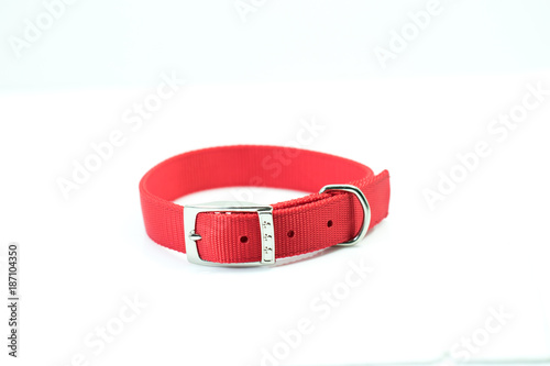 Pet supplies about collars of red isolated on white background.