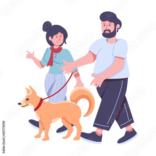 pet, dog, couple, walking, human, person, character, vector, flat, illustration