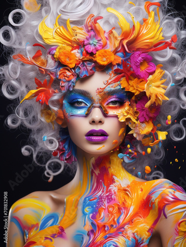 flower, colours, fashion, style, model, closeup, face, make-up, design, studio, photo, ai, illustration, colourful, runway, trendy, coiffure, accessory, glamour, sewing, texture, pose, editorial, elegance, urban, beauty, textile, digital artwork, chic, accessory, celebrity, futuristic, red carpet, artistic, cultural, abstract