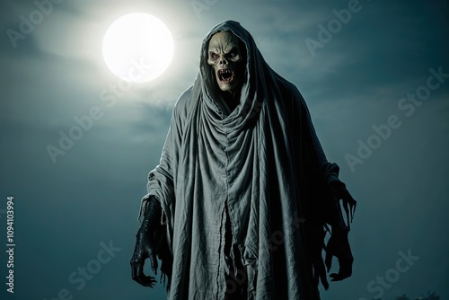 Phantasmic Fiend: A Petrifying Creature Draped in Tattered Linen Against a Midnight Glow