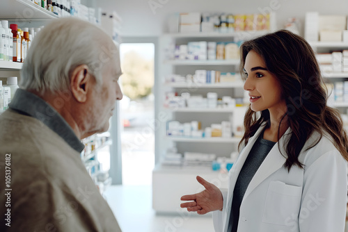 apothecary, woman, pharmacy, white, coat, health care, medicine, pharmaceutical, professional, uniform, chemist's shop, chemist, provider, expert, medicals, setting, prescription, patient, care, attire, facility, shelf, clinical, client, service, health, wellness, assistant, retail, service, environment, men at work, advice, treatment, medication, prescription, treatment, dosage, drug, help, helper, old, mature, senior, retired, working, talking, instruction