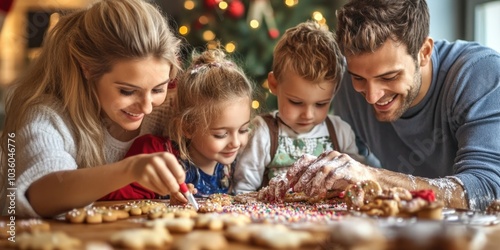 frosting, sprinkle, holiday decorations, creative activity, holiday spirit, playful, cheerful, enchanting, family time, laughter, togetherness
