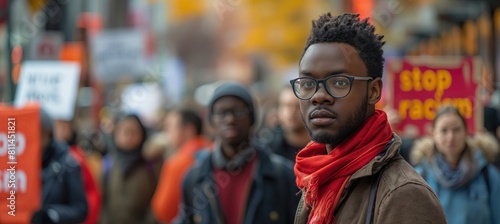 photo of a crowd, a meeting, chanting stop racism in order to protect human rights.