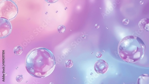 Photo of a mesmerizing array of iridescent bubbles floating against a soft, dreamy gradient background