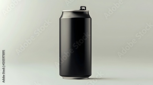 photo of a slim matte black energy drink can with a glossy pull tab isolated against a gradient background The can has a clean minimalist design with a modern corporate aesthetic