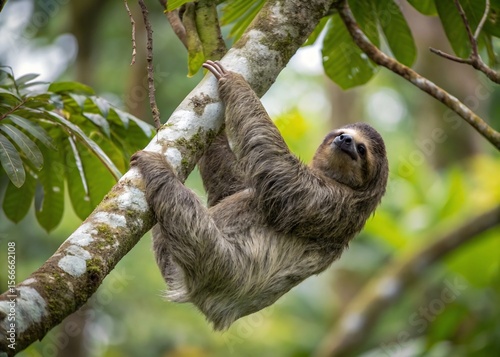 sloth, animal, mammal, tree, nature, wildlife, forest, tropical, tree branch, cute, lazy, slow, fur, claw, hanging, climbing, leaf, green, outdoors, day, fauna, vertebrate, arboreal, rainforest, environment, natural, habitat, wild, jungle, south, america, costa, central, looking, portrait, 1, alone, closeup, view