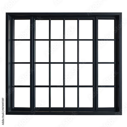 Photo of black-framed, rectangular window isolated on transparent background