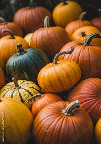 Photo of Colorful Pumpkins Displayed Together in Autumn Harvest Season