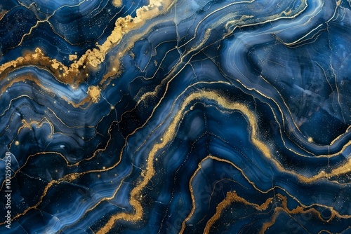Photo of Navy blue dark marble pattern with golden veins. Background texture for backdrops or mapping