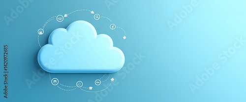 Photo realistic cloud service icon design with ample space for text and images, ideal for illustrating cloud processes and business strategies clearly.