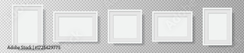 Photo Realistic White Blank Picture Frame, hanging on a Wall from the Front. mockup isolated on transparent background. Graphic style template. Vector illustration