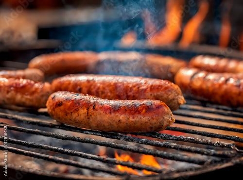 Photograph German Brühwurst Sausages on a grill, roasting
