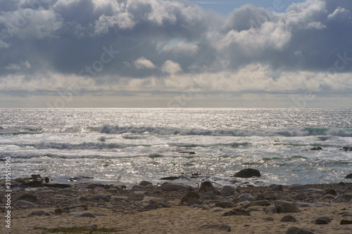 Photography of the Atlantic ocean waves roll on the sandy beach in daytime. Northern Portugal is full of wildness and freshness. The beauty of nature concepts.