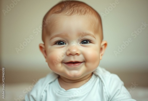 Photorealistic portrait of a cute baby with a gentle smile