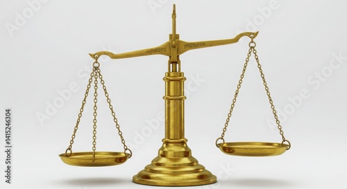 Photorealistic rendering of an antique brass balance scale with ornate details and golden finish