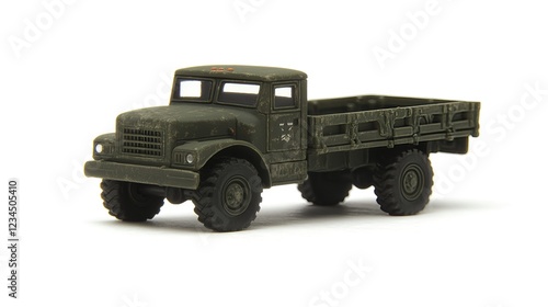 Photorealistic Toy Military Transport Truck Isolated on White Background