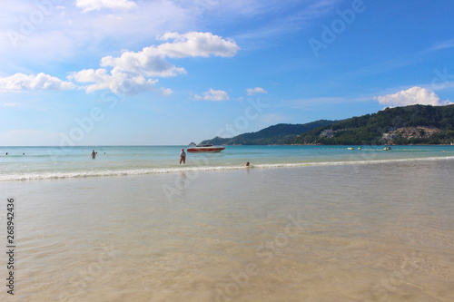 Phuket Province, Thailand - November17, 2017: Nai Harn Beach. Beautiful beach and sea in Phuket, Thailand. Traveller from around the world come to relax in the summer holidays.