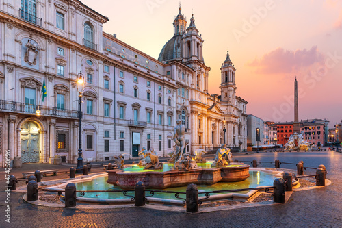 Piazza Navona with Basilica at sunrise, Rome, Italy