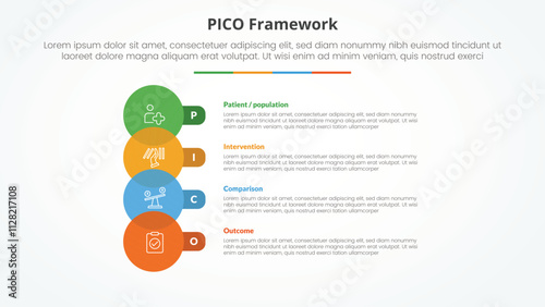 infographic, infographic, info, graphic, graphic, template, presentation, layout, step, stage, flat, style, element, design, creative, concept, banner, option, slide, slide, point, vector, illustration, 4, 4, pico, framework, population, intervention, comparison, outcome, model, tool, analysis, research, question, process, problem, clinical, health, health care, evidence, big, circle, stack, round, rectangle, shape