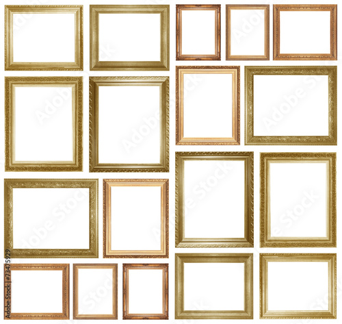 antique, art, background, blank, classical, clipping, art deco, empty, few, frame, gilded, gold, gold, image, isolated, object, old, old-fashioned, path, picture, retro, set, vintage, white