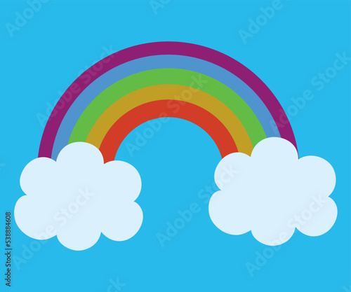 picture of rainbow and two clouds on blue background