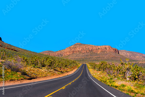 grand canyon, arizona, straight, road, stretch, highway, desert, scenic, landscape, butte, rocky, formation, asphalt, nobody, blue skies, yellow line, rugged, terrain, travel, springtime, sparse, vegetation, adventure, nature, picturesque, majestic, outdoors, journey, southwest, horizon, tranquil, remote, breathtaking, wild, exploration, beauty, road trip, mountain, clear sky, serene, solitude, geology, scenery, red, america, drive, trip, vale, massive