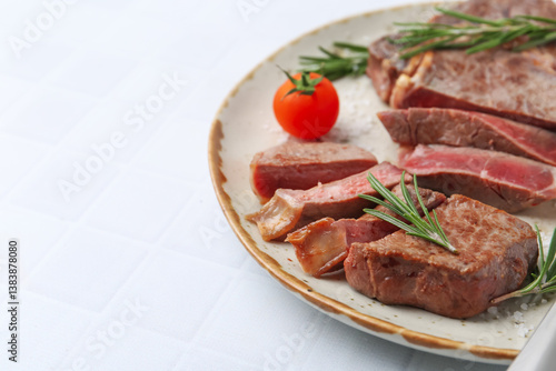 background, bar-b-q, beef, closeup, cooked, cooking, copy, cookery, cut, delicious, diet, dinner, dish, eat, fillet, food, fresh, epicure, grilled, healthy, homemade, hot, ingredient, juicy, lunch, meal, meat, medium, nourishment, object, organic, piece, plate, portion, rare, receipe, red, eatery, roasted, rosemary, slice, space, spice, steak, table, tasty, text, tiled, tomatoes