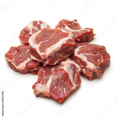 pieces of raw meat isolated on white background