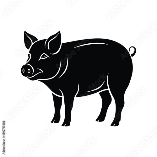 Pig silhouette black vector illustration. Full body farm animal outline for agriculture logos, food brands, or children's designs