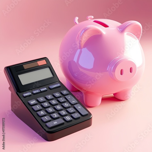 "Piggy Bank and Calculator for Money Management"