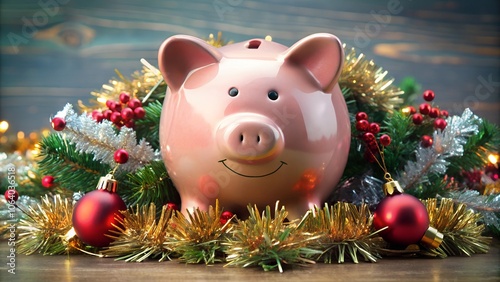 piggy bank and christmas tree