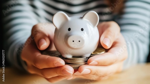 Piggy Bank and Coins Held by Hands Savings Financial Growth Future Planning