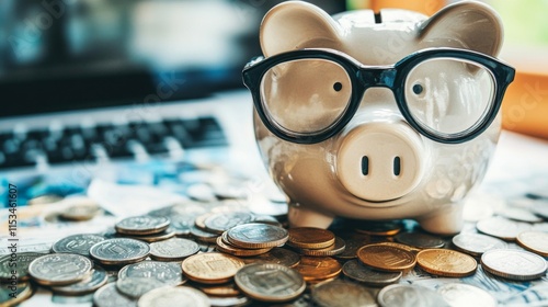 baby pig, bank, goggles, spectacle, coin, money, currency, savings, finance, wealth, budgeting, economy, investment, financial, planning, capital, resource, income, expense, debt, credit, loan, interest, profit, loss, risk, return, growth, security, stability, account, transaction, balance, statement, laptop, keyboard, bill, cash, fund