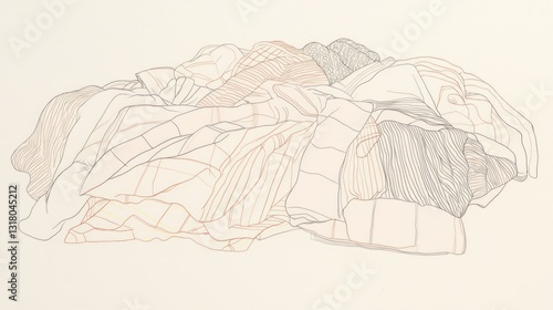 Pile of clothes, line drawing, pale background