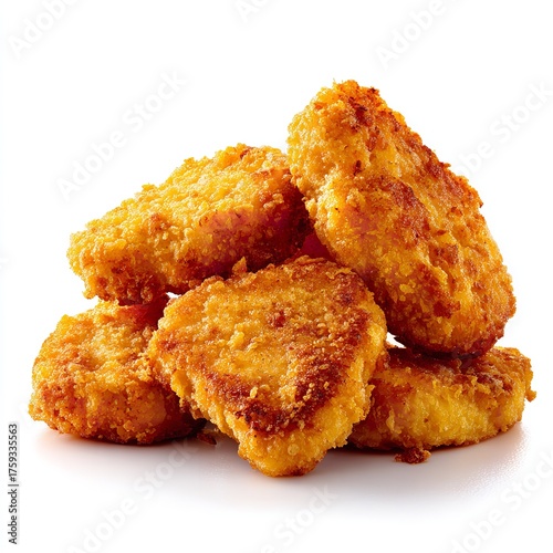 Pile of crispy chicken nuggets isolated on white background, a popular and tasty fast food snack