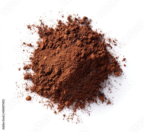 cocoa, powder, brown, dark, pile, heap, food, ingredient, spice, natural, organic, nourishment, health, chocolate, delicious, dessert, baking, receipe, cooking, texture, coarse, fine, ground, dust, scattered, top, view, isolated, white, background, product, foodstuff, blend, raw, premium, healthy