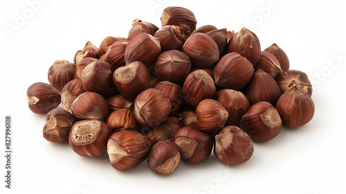 Pile of Hazelnuts on White Background