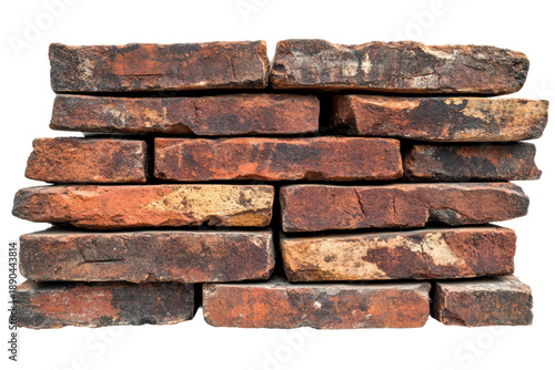 Pile of old bricks stacked on a transparent background for design or construction use