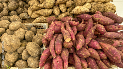 Pile of sweet potato sold in the market. Indonesian sweet potato