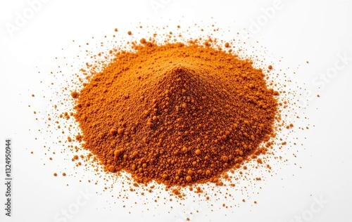 Pile of Vibrant Orange Powder, Spices or Pigment on White Backdrop
