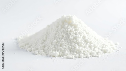 Pile of white granulated sugar on white background, pure, clean background