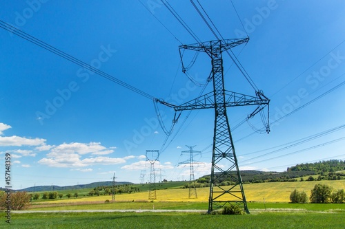 Pillars of high voltage in the Czech landscape. Electricity distribution.