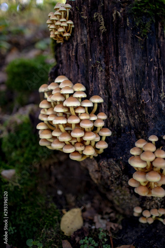 Pilz Schwefelkopf an Baumstumpf im Herbst