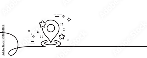 Pin line icon. Continuous one line with curl. Map place marker sign. Destination pointer symbol. Pin single outline ribbon. Loop curve pattern. Vector